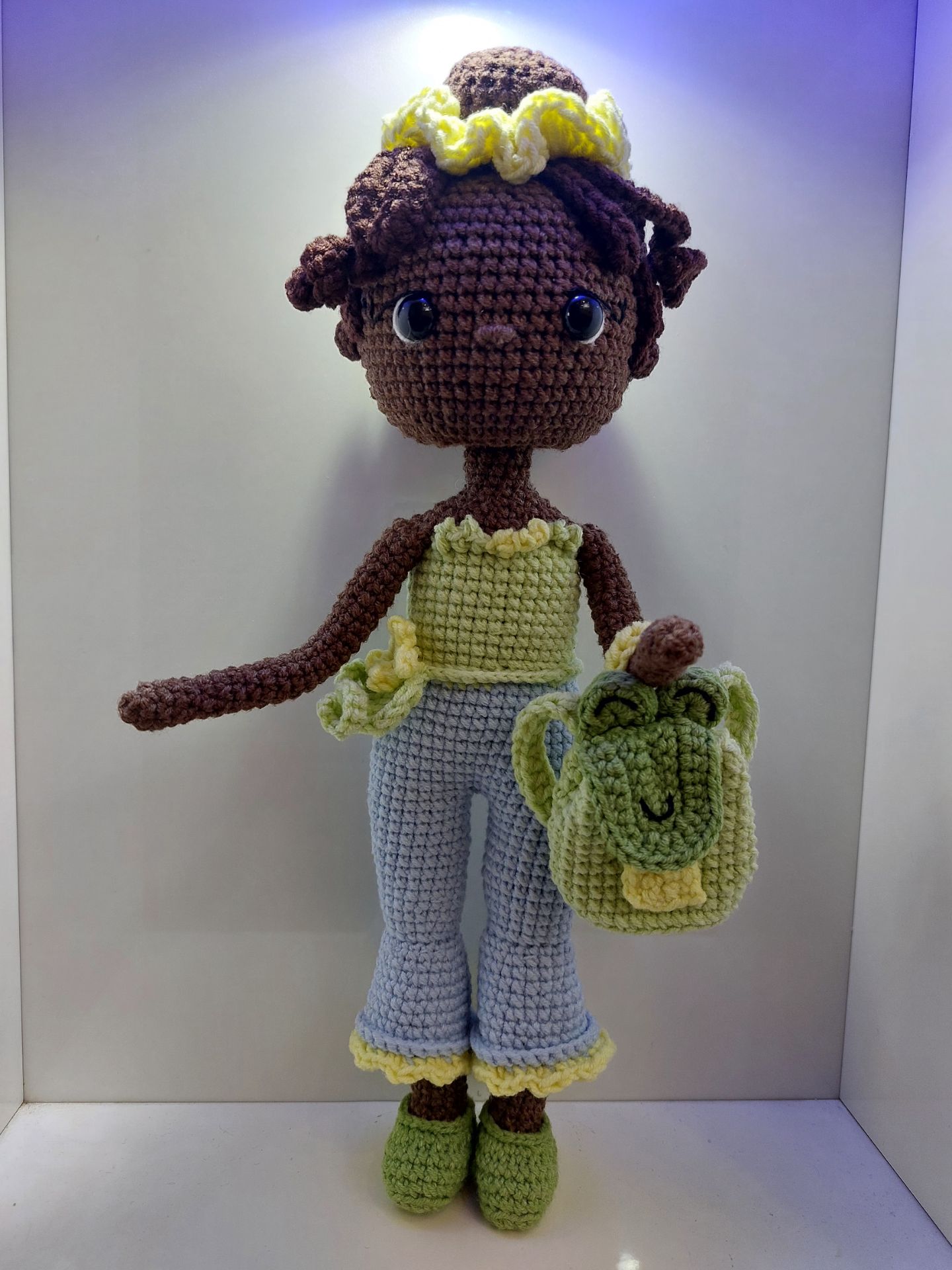 از کاموا ی جینز اصل ترکیه و با قلاب های تولیب اصل ترکیه بافته شده است.